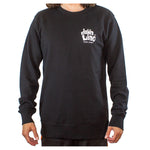 A black heavyweight crew sweatshirt designed by ourselves and printed locally in Cornwall.