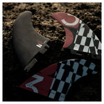 The Deus large thruster set is a modern fin template that's designed for aggressive high speed surfing. Based on the FCS Accelerator fin template.