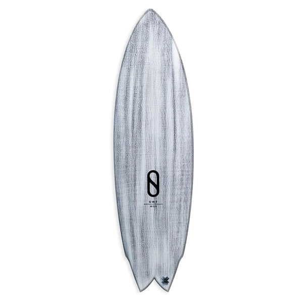 Inspired by the sleek outline of a great the white shark the Great White Twin is a hybrid twin fin with the paddle power of a fish and the on rail abilitles of a shortboard.