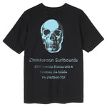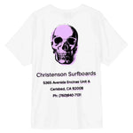 - Christenson Surfboards’ iconic skull graphic with the Carlsbad, California address