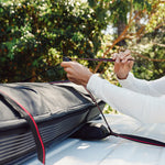- Extra high soft foam pads. Keeps handles and zips from board covers clear of car roof