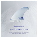 Performance Core (PC) fins are made using a multi-layered resin transfer moulding process. The flex pattern in PC fins extends progressively from the base through to the tip, helping the surfer to maintain drive and hold through a turn. This versatile fin material is light and can be used in a variety of different conditions.
