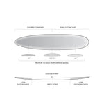 | Concaves | This shape's hull bottom is what makes it unique, it's a sort of belly that helps the board turn over rail-to-rail extremely easily. |