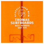 "The Postie has a real soft rolled vee through the nose that flows through the middle and leads to a soft panel vee through the tail, all executed over 12’ plus of rail with the utmost subtlety. Rocker is smooth and consistent over the entire length of the board. Just the right amount to offer the optimal amount of glide, turnability and cross stepping capabilities - some people go all the way to the nose, but for the most part the Postie likes to be surfed from the back two halves of the board." Thomas Surfboards