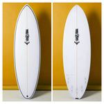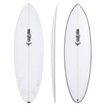 | Glassing | Boards 5'6" - 5'8" are glassed standard with 4 oz. deck x 4 oz. bottom. Boards 5'9" and above are glassed standard with 4 x 3 oz. deck and 4 oz. bottom. (All sizes come standard with Hybrid Fibre tail strips) |