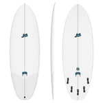 Revamped for 2025, the Puddle Jumper is a high-performance small wave surfboard designed for speed and versatility. The Puddle Jumper incorporates a concave bottom transitioning to a vee tail. This design delivers effortless wave-catching, enhanced glide, and remarkable stability.