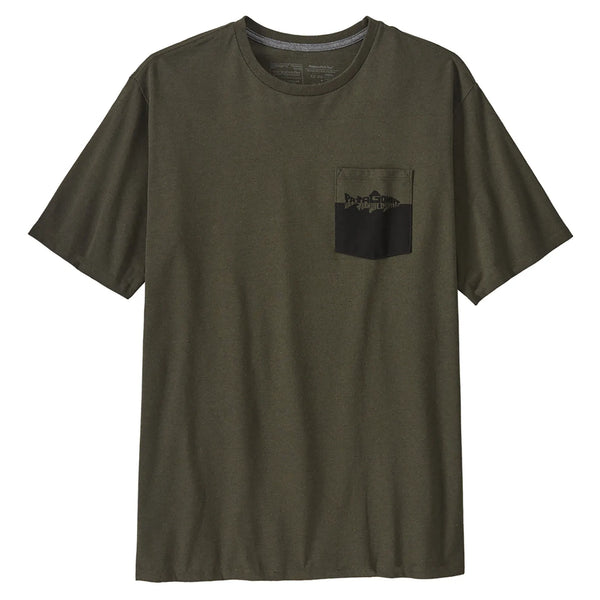 The Patagonia Men's Wild Waterline Pocket Responsibili-Tee combines comfort with sustainability. Made from recycled cotton and polyester, this soft, breathable tee features a stylish water-inspired graphic on the pocket and a classic fit. Fair Trade Certified™ sewn, it’s the perfect choice for eco-conscious adventurers.