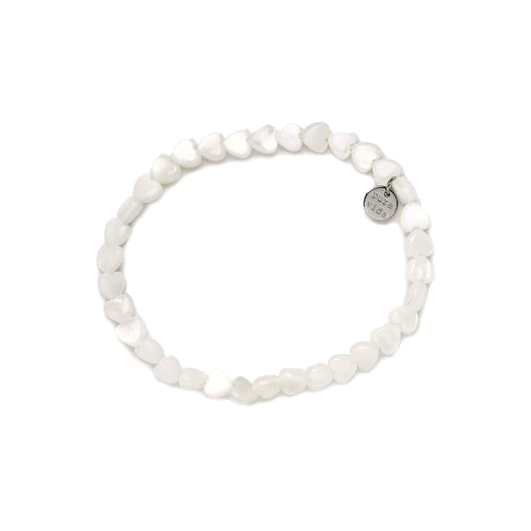 - Mother of Pearl heart beads strung on clear stretch wire