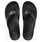 - Reef's most comfortable footbed featuring the perfect blend of cushion and rebound support. This is a wider shape with generous arch support and heel cupping with a hibiscus flower footbed design deboss