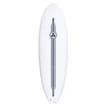 A collaboration between Channel Islands Surfboards and Shapers Australia. Essentially it is a completely new, and world first of it's kind, stringer system. Based on the principles of elastic energy, Spine-Tek flexes under pressure, (loading up through turns) and returns to it's normal rocker, providing surfboards with additional drive, speed, power and flow. Made from a fibreglass and resin composite, the virtually unbreakable Spine-Tek stringer is installed into the deck of the EPS foam core, and then layered over with E-Glass and Entropy Super Sap Epoxy, (Ecoboard Certified).