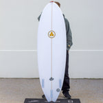 The G-Skate is a modern hybrid that was created from a collaboration between Britt Merrick and the three Gudauskas brothers, Dane, Pat & Tanner. The G-Skate is designed to be fast, fun and responsive in a large range of waves: it's a board that can turn well in big powerful conditions and, as the same suggests, offer a fun loose and skatey feeling in mushy weak waves.