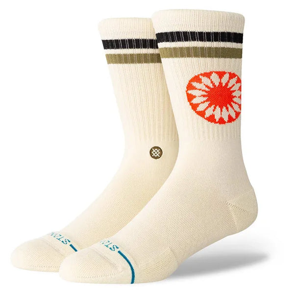 Brighten up your wardrobe with the Stance Sun Dial Crew Socks. Featuring a striking sun dial design and vibrant colours, these socks add a bold, graphic element to any outfit. Crafted from a soft, breathable fabric blend, they offer medium cushioning, arch support, and reinforced heels and toes for exceptional comfort and durability. Perfect for making a stylish statement while staying comfortable, the Sun Dial Crew Socks bring a touch of fun and flair to your daily routine.