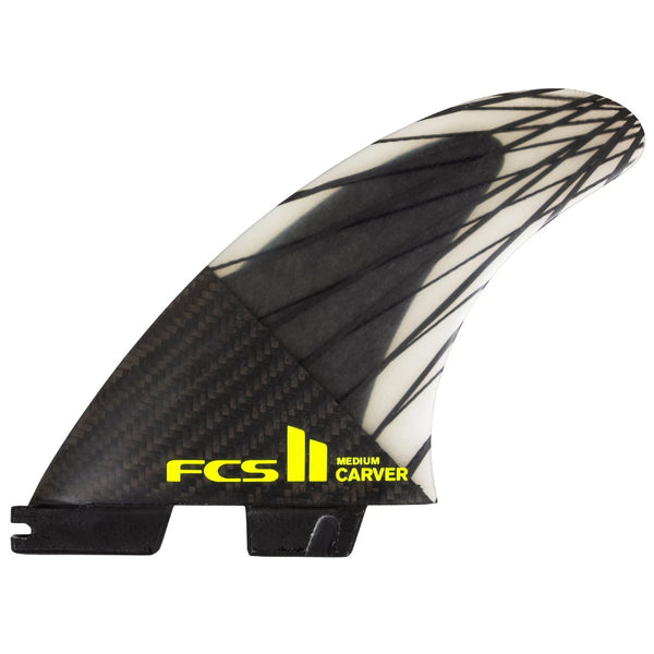 Often referred to as PC Carbon or PCC, these fins are highly responsive and feature strategically placed carbon that’s designed to complement the fin template. PCC fins suit fast surfing and are favoured by power surfers who like to perform explosive turns on critical parts of the wave.