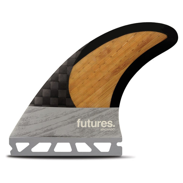 A Speed Generating fin with a Ride Number of 9.8. The Machado is made with Futures Blackstix construction with an additional layer of bamboo that’s become synonymous with the Machado thruster. The combination of carbon and bamboo materials and the V2 foil create a very lively feel, ideal for high performance in the pocket surfing.