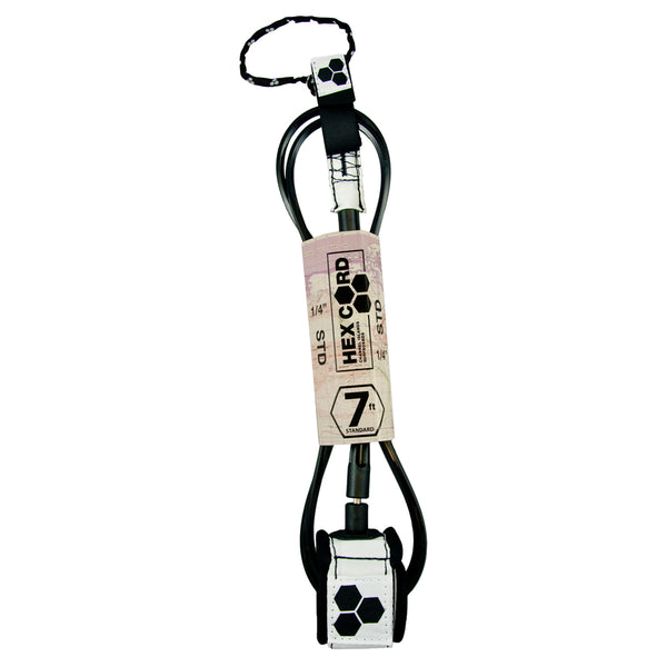 Channel Islands hex cord comp leash, the hexagonal cord shape has proven to kink and stretch less than a traditional cyclinder-shaped leash.