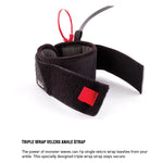The power of monster waves can rip single velcro wrap leashes from your ankle. This specially designed triple wrap strap stays secure.