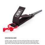 A wider, longer, stronger rail saver with extra triple wrap velcro adds to the strength and security. Also comes with two 4mm heavy duty leash plug cords for backup strength.