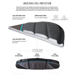 Fantastic protection for your shortboards. Fits 1-3 boards, suitable for international travel. 20mm shock absorbing rail protection. Internal compression straps minimizes board movement whilst in transit. Includes a detachable divider.