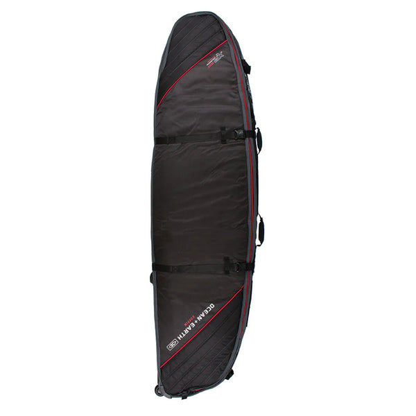 The ultimate in board protection the triple wheel boardbag will carry 3 boards with fins or 4 boards without fins. Save your arms and let the wheels do the work.