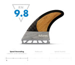 A Speed Generating fin with a Ride Number of 9.8. The Machado is made with Futures Blackstix construction with an additional layer of bamboo that’s become synonymous with the Machado thruster. The combination of carbon and bamboo materials and the V2 foil create a very lively feel, ideal for high performance in the pocket surfing.