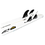 The Eclipse features a wider nose for maximum paddling with a little extra nose rocker to ensure the nose doesn't catch in fast tight turns. The most striking feature is the diamond tail which keeps the board as short as possible with enough foam around the fins for maximum speed.