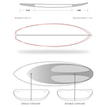 A moderate single concave running into double concave through the fins, providing extra lift and liveliness. |