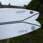 | 5'8" | 19 3/8" | 2 7/16" | 29.2 ltr | Futures | Twin-fin | £650.00 |