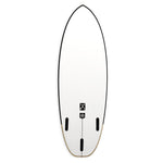 A stringerless EPS core with flex controlled at the rails made from Paulownia and Balsa wood - this construction is light and lively underfoot, and excellent at generating speed in everyday waves. Rob Machado calls the parabolic flex control provided by the wooden rails in the Machadocado "good for drive on rail and control in critical sections."