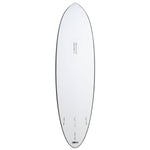 The vee throughout the board from nose to tail with added double concave through the fins helps it rock from rail to rail and retain its manoeuvrability. The plan shape holds a generous distribution of volume throughout.