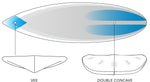 Glassing specs: Boards 5'4" - 5'10" glassed standard with 4 x 2 oz. deck x 4 oz. bottom. Boards 5'11" and up glassed standard with 4 x 4 oz deck x 4 oz. bottom (All sizes come standard with Hybrid Fibre tail strips).