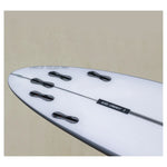 It comes as standard with carbon strengthening strips top and bottom and Innegra toe and heel strips. It can be surfed as a quad or thruster or in really weak waves it goes insane with two large sides and a small trailer. It can be scaled down to a 5’6’’ and up to a 7’6’’…planning a trip ..? look no further…