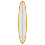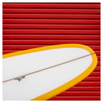 I really love how easy it stalls and redirects back into the pocket. The roll in the tail moves forward to a generous amount of blended concave in the nose. The outline of the nose is blunt and slightly more narrow than our other models, which means you can get really critical hang fives and tens, but the concave is forgiving and allows you to noseride even when you’re not in the steep sections. The Bill Pin is a Thomas Surfboards classic that’ll stay the same forever."