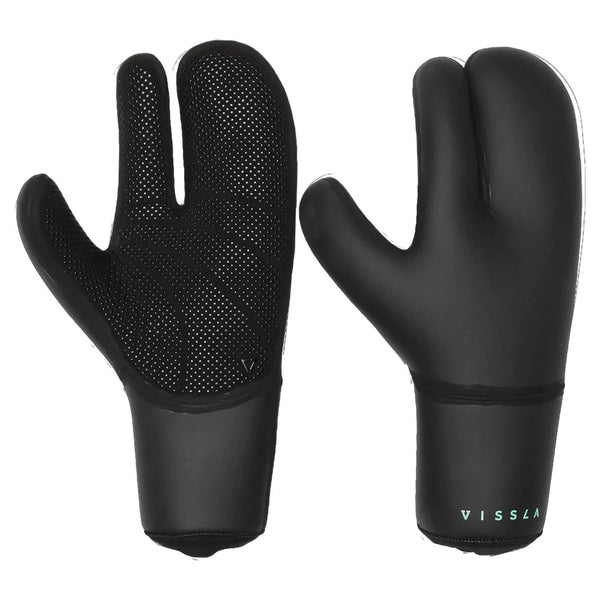 Super warm 5 mm "claw" style wetsuit gloves by Vissla that are ideal for cold waters, 46 - 53° F / 8 - 12° C.