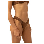 Made from eco-friendly recycled fishing nets, the Avoca Ring Hi Cut Pant features an earthy olive tone in a textured wrinkle fabric that’s soft and sustainable. With minimal bottom coverage and a high-waisted design accented by o-ring details, these bottoms offers a chic and flattering look. The Hi Cut Pant elongates the figure and enhances curves along with the softly scooped waistline that compliments all body shapes.