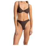 The Rhythm Classic Hi Cut Bottoms epitomizes timeless elegance with a contemporary twist. They have been crafted for the modern beachgoer and feature a stylish medium coverage. They sit high on the hips resulting in a more enhanced and flattering shape to your figure. The stylish chocolate hue adds a touch of sophistication, while the clean finished waistband ensure a perfect fit. Whether lounging by the pool or strolling along sandy shores, these bottoms blends comfort and style seamlessly, making it a must-have.