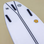 A collaboration between Channel Islands Surfboards and Shapers Australia. Essentially it is a completely new, and world first of it's kind, stringer system. Based on the principles of elastic energy, Spine-Tek flexes under pressure, (loading up through turns) and returns to it's normal rocker, providing surfboards with additional drive, speed, power and flow. Made from a fibreglass and resin composite, the virtually unbreakable Spine-Tek stringer is installed into the deck of the EPS foam core, and then layered over with E-Glass and Entropy Super Sap Epoxy, (Ecoboard Certified).
