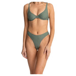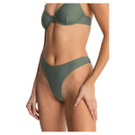 The Rhythm Classic Hi Cut Bottoms epitomizes timeless elegance with a contemporary twist. They have been crafted for the modern beachgoer and feature a stylish medium coverage. They sit high on the hips resulting in a more enhanced and flattering shape to your figure. The stylish olive hue adds a touch of sophistication, while the clean finished waistband ensure a perfect fit. Whether lounging by the pool or strolling along sandy shores, these bottoms blends comfort and style seamlessly, making it a must-have.
