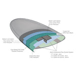 Thunderbolt is a fused cell EPS foam blank utilizing a multi-component flex control system and a multi layer shell consisting of layers of fibreglass and Carbon Fibre. The deck and bottom lamination has 2oz fibreglass and 6oz carbon fibre. This results in a solid board with a stiffer feel that can hold its own in bigger waves.
