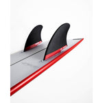 An upright keel fin template designed to suit shorter traditionally shaped fish surfboards, geared towards powerful rail to rail surfing on open faces. Designed for Futures plugs.