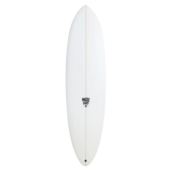A classic mid-length outline complemented with a twin fin set up for more looseness and more down the line speed. The Houdini features a fuller nose section with plenty of volume, which allows for easier paddling and reliable stability whilst catching and taking off on a wave. The tail section however, is pulled in to allow for more control when things get faster.
