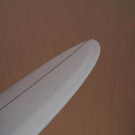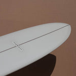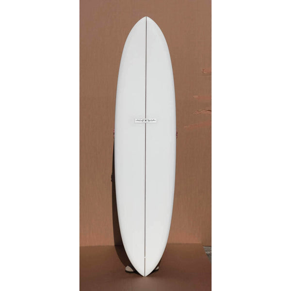 "The Lizzy has a long, low rocker line and has a bottom shape that I consider somewhat of a Santa Barbara specialty - the tri-plane bottom is used in a lot of my designs to allow a wider board to switch onto rail much cleaner and quicker than it's actual size. What it gives the Lizzy is a much more active, positive response on rail; You can cruise to your heart's content, or crank it off the bottom and crack the lip with a lot more aggression than any other mid-length of my design."