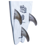 The Triplet is a super versatile board, combining the rails and bottom contours of a performance shortboard with an old-school rocker and outline profile. There's loads of volume under the chest to make paddling and catching waves a breeze, this is complemented with a pulled in winged tail to make turning as sharp as possible. The Triplet works' great as a twinny, a 2+1 and a thruster.