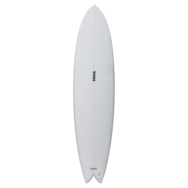 A stretched out and more refined version of the Vouch Vish, the Mid Vish is an incredible mid-length twin-fin that catches waves with ease and flies down the line. The additional volume and extra length gets you in the wave super early, even on fast hollow waves. Despite being a bigger board, the Mid Vish features a trimmed down shape with thinned out rails, which allows the board to turn with ease and hold strong at speed.